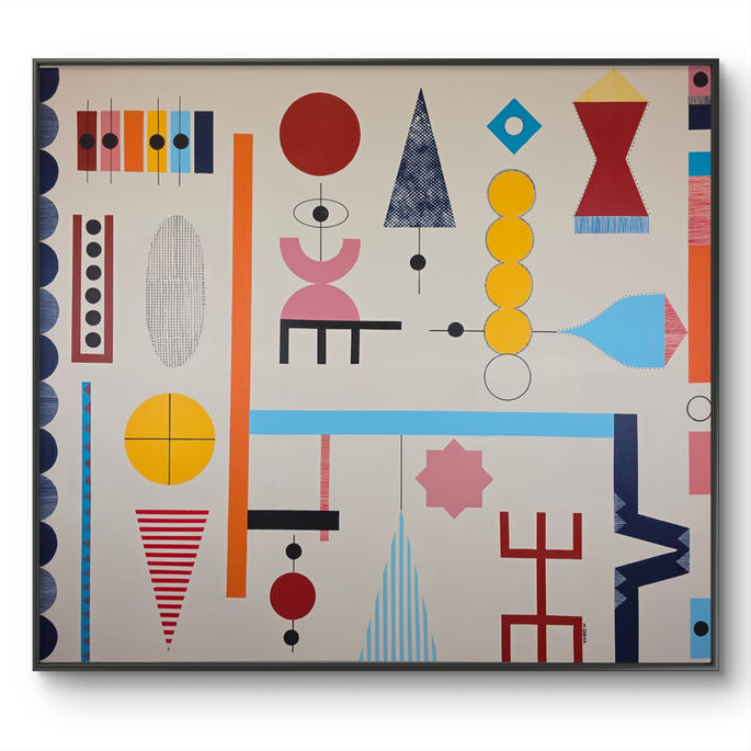 Geometric forms meet fluid strokes, creating a visual rhythm that feels both precise and vibrant. Abstraction becomes a reflection of society itself: a space where diversity and equality can coexist, where every fragment connects to form a whole. In his work, geometry is humanized, and color evokes inclusion, balance, and belonging.